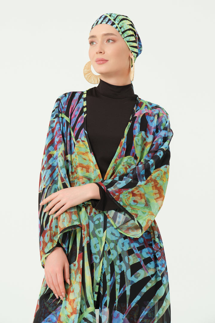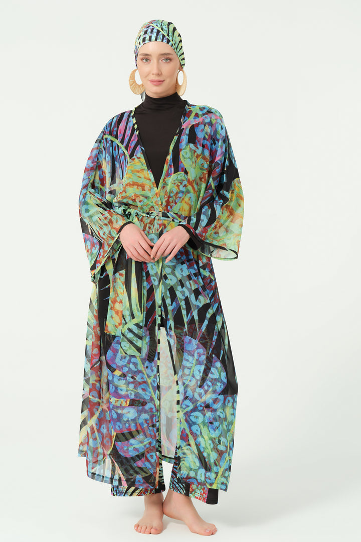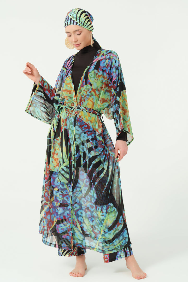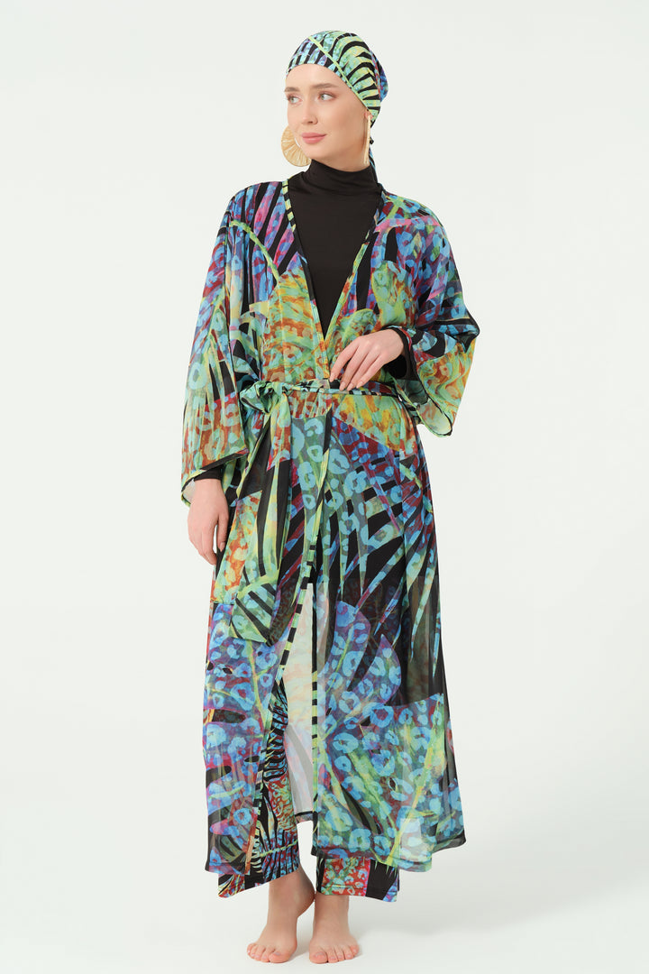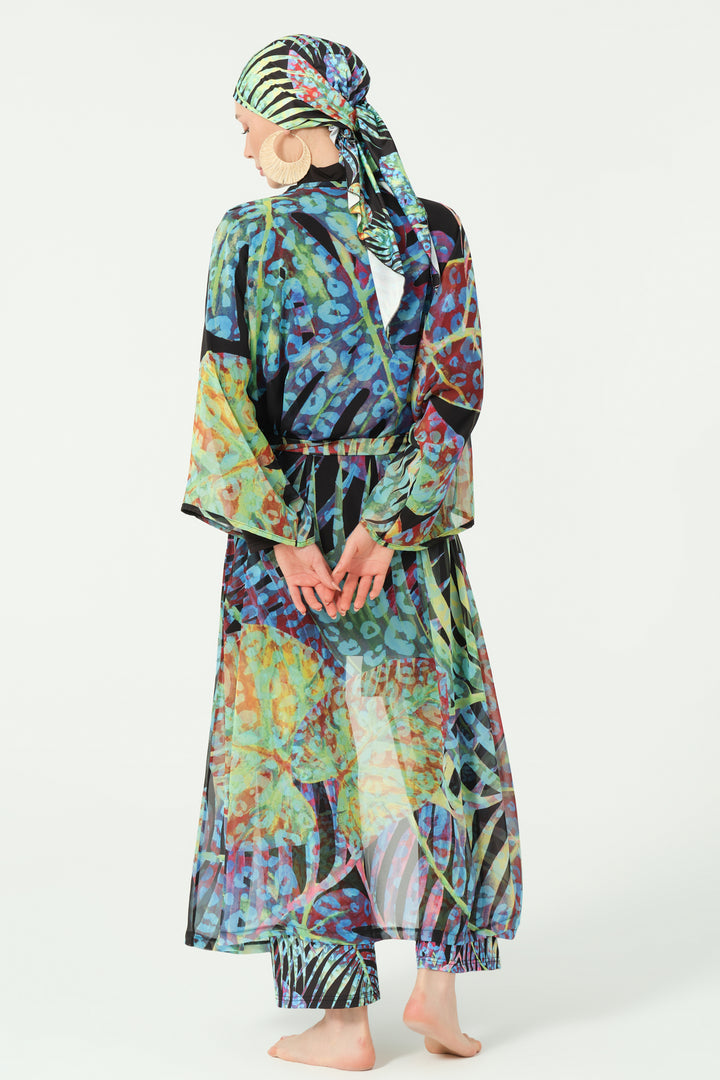 Elegant design made of patterned crepe chiffon fabric, featuring a stylish belt detail that adds a chic, feminine touch.