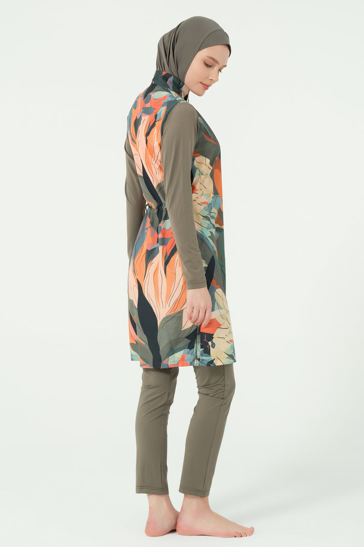 Nature Pattern Modest Swimsuit – 5-Piece Set