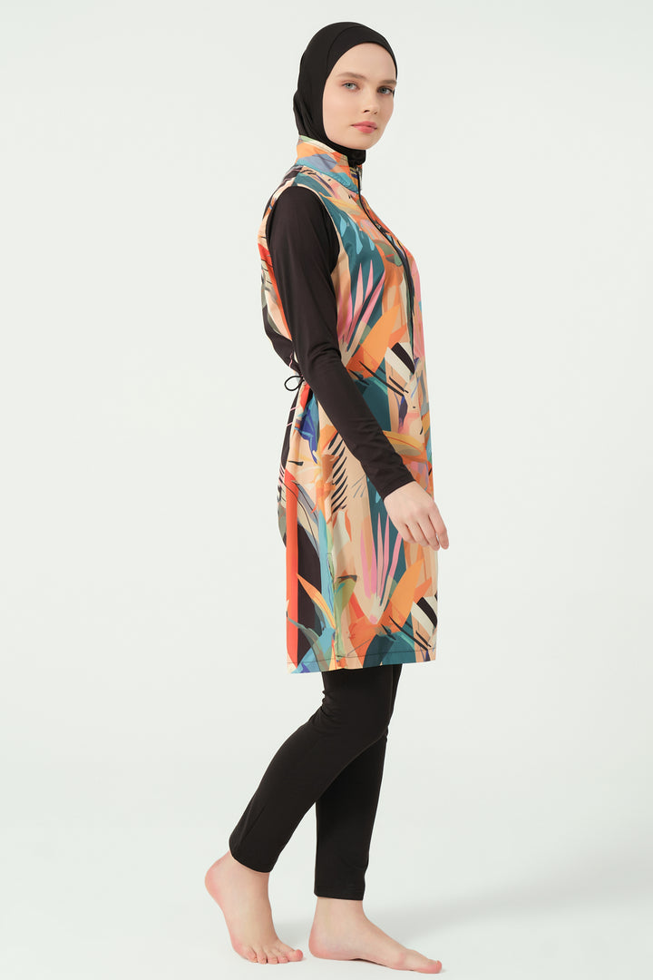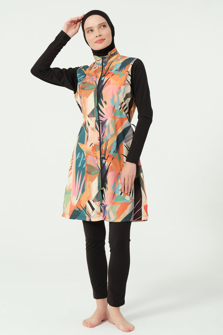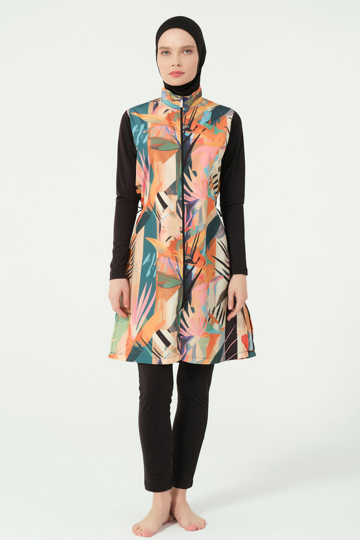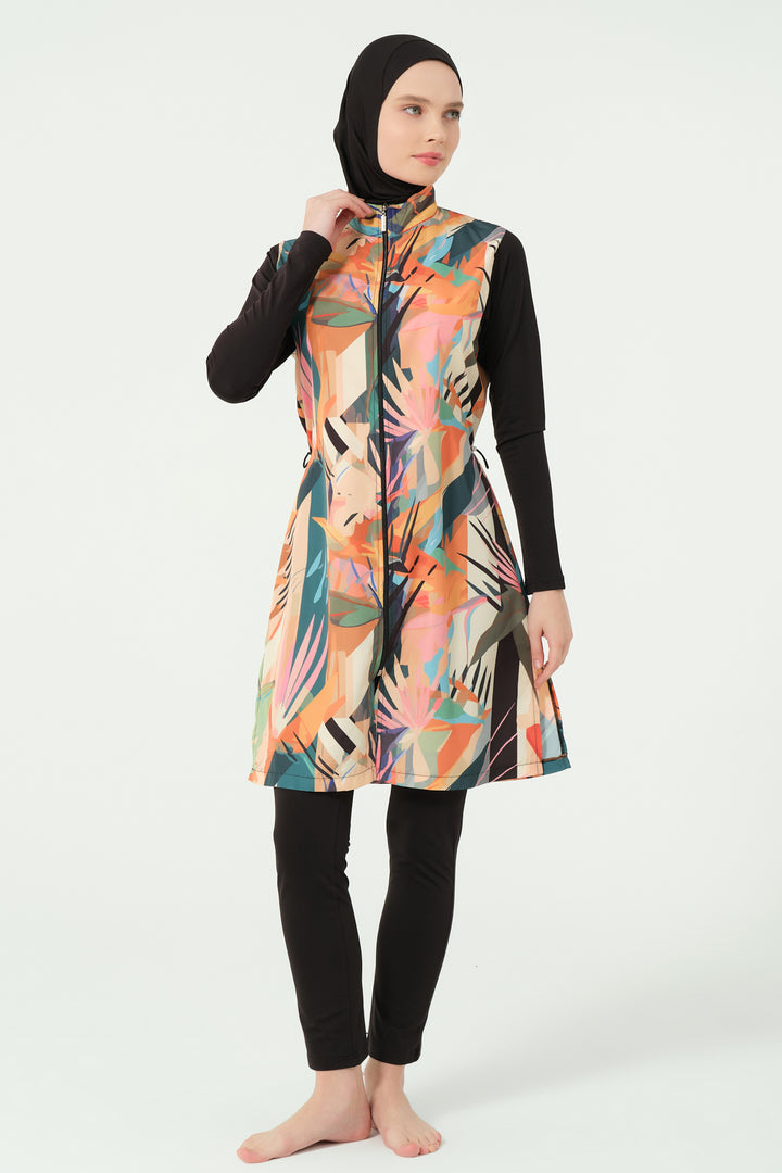 The Chrysanthemum Patterned Modest Swimsuit is the perfect balance of comfort, elegance, and modesty, making it an ideal choice for stylish swimwear that suits all body types.