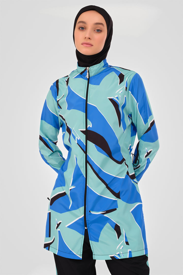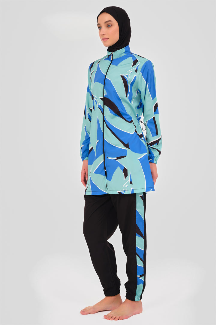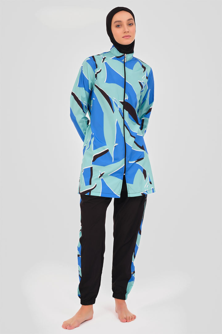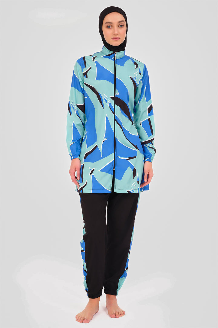 This swimsuit is the perfect blend of modesty, comfort, and vibrant style, making it a standout choice for any summer outing.