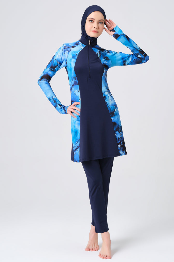 This swimsuit is the perfect blend of modesty, comfort, and vibrant style, making it a standout choice for any summer outing.