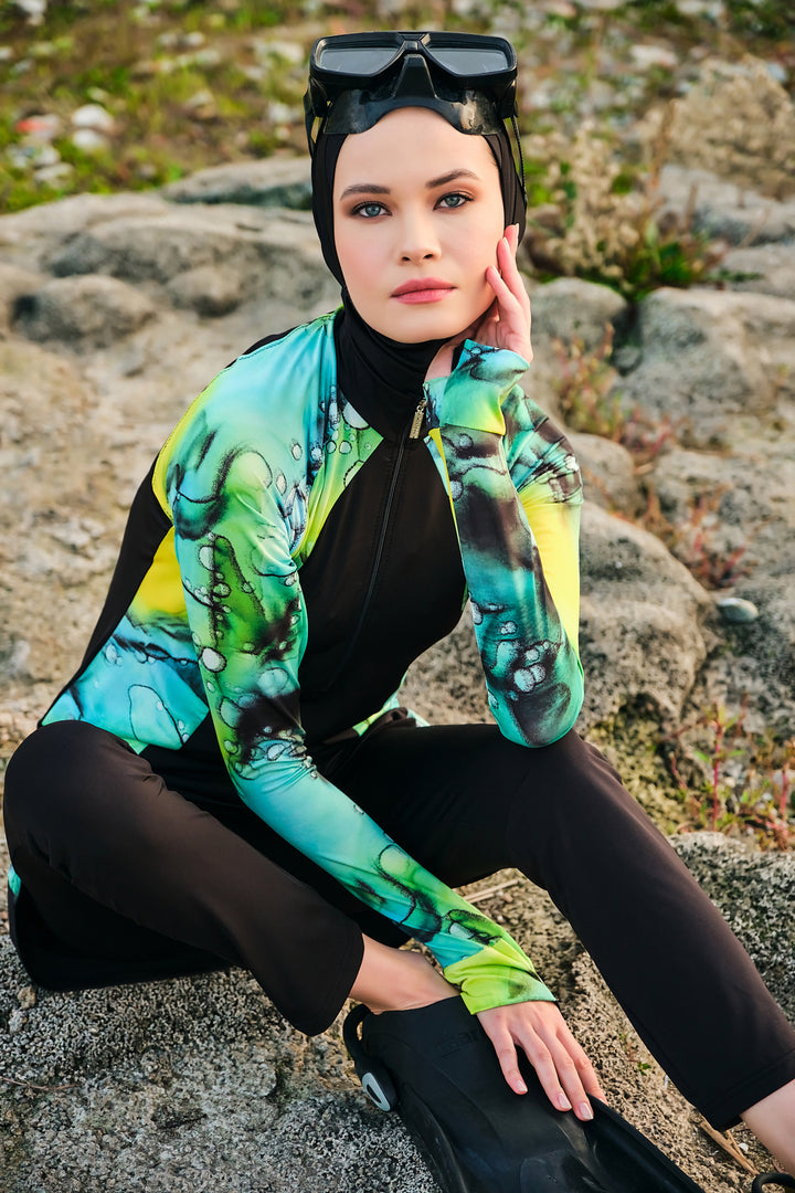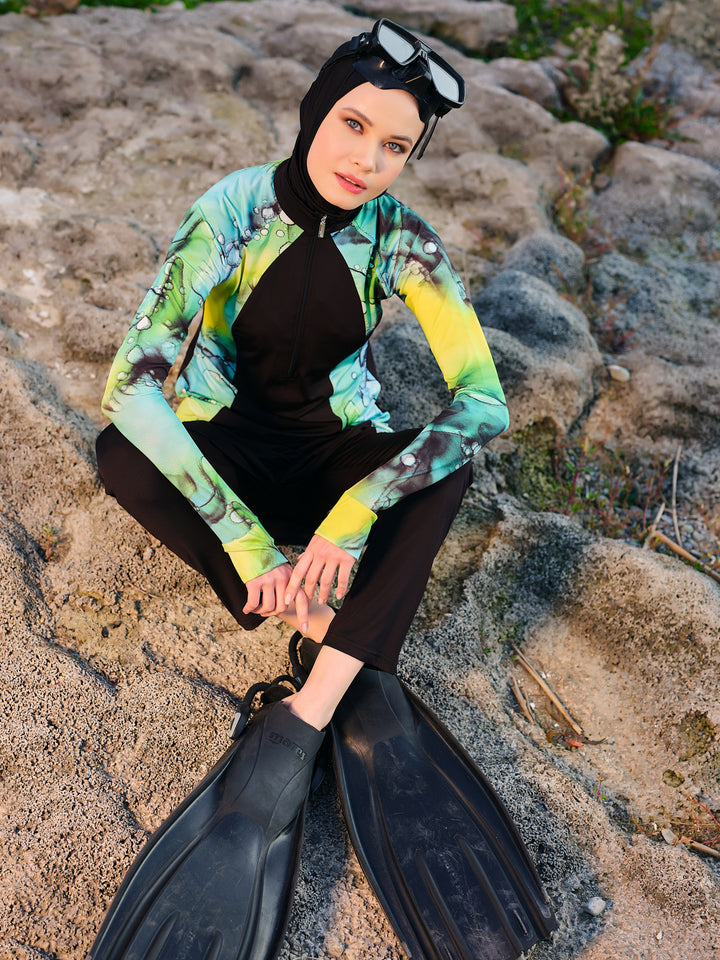 Introducing the Lemon Patterned Modest Swimsuit, a refreshing and stylish swimwear option designed with vibrant yellow hues and playful lemon patterns. Perfect for women seeking modesty without compromising on style, this swimsuit offers a comfortable and elegant fit with loose trousers and a relaxed silhouette. Ideal for both the sea and pool, its eye-catching design ensures you'll stand out while enjoying your time in the water.