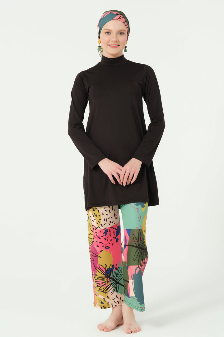 • Top: Classic loose-fit design with long sleeves and a high collar for full coverage.