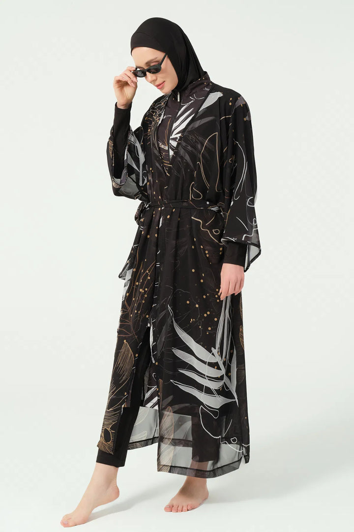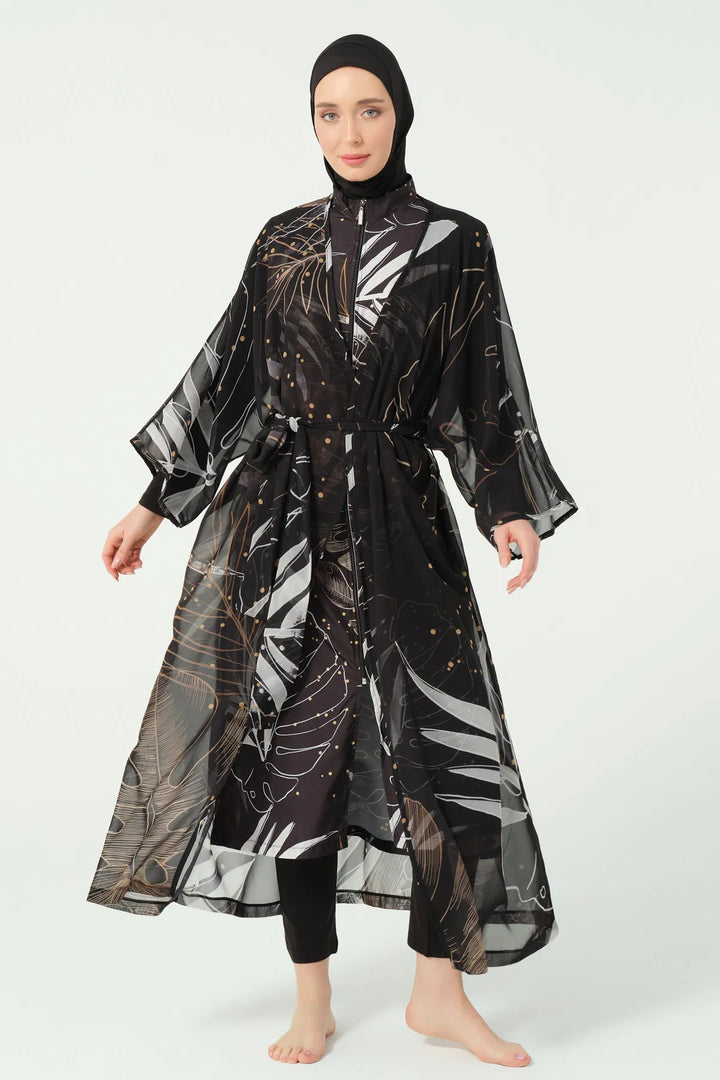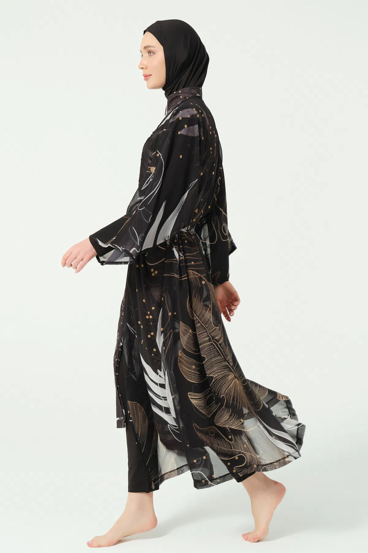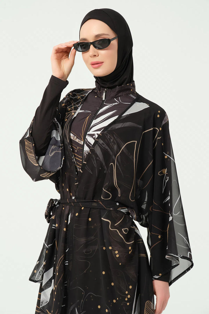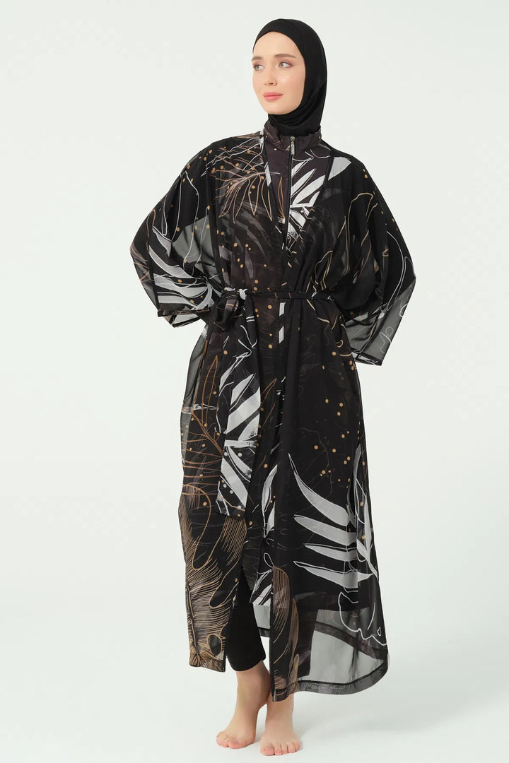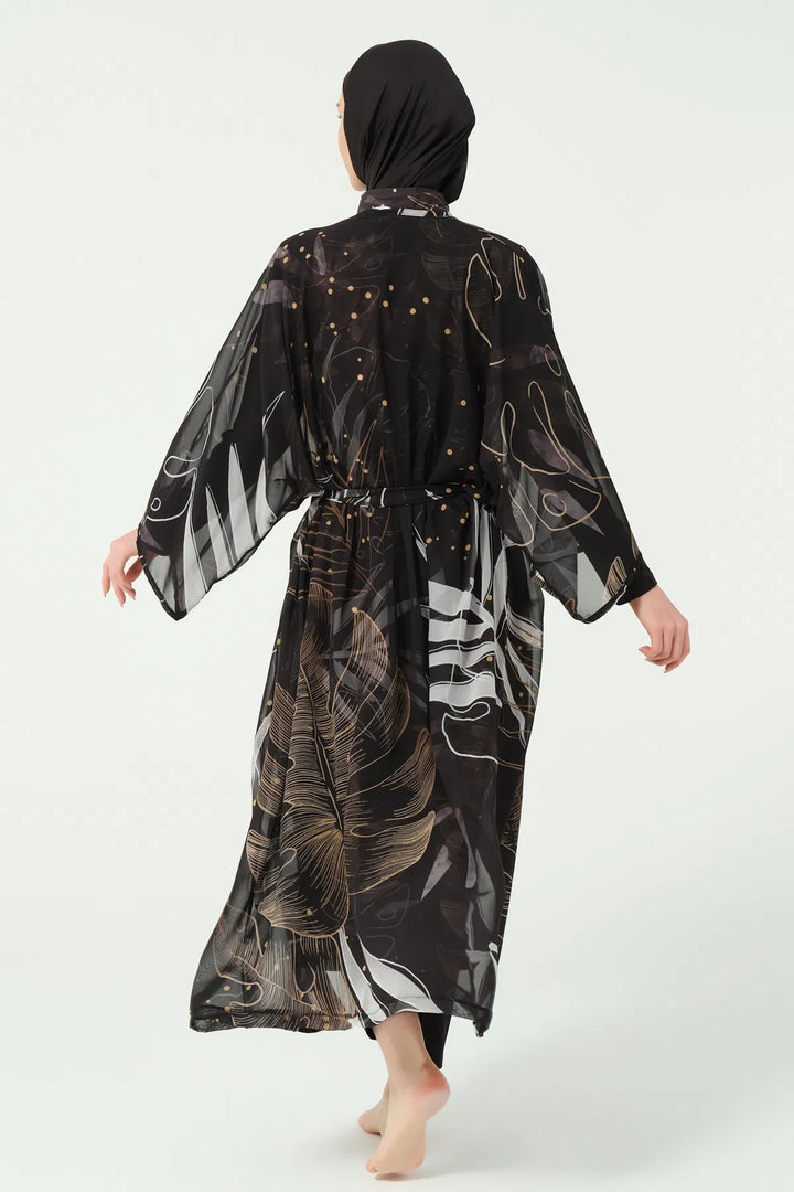 Elegant design made of patterned crepe chiffon fabric, featuring a stylish belt detail that adds a chic, feminine touch.