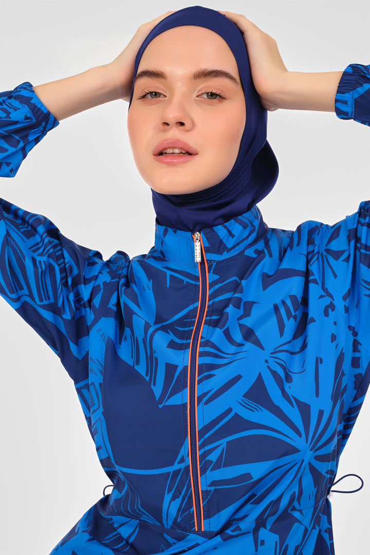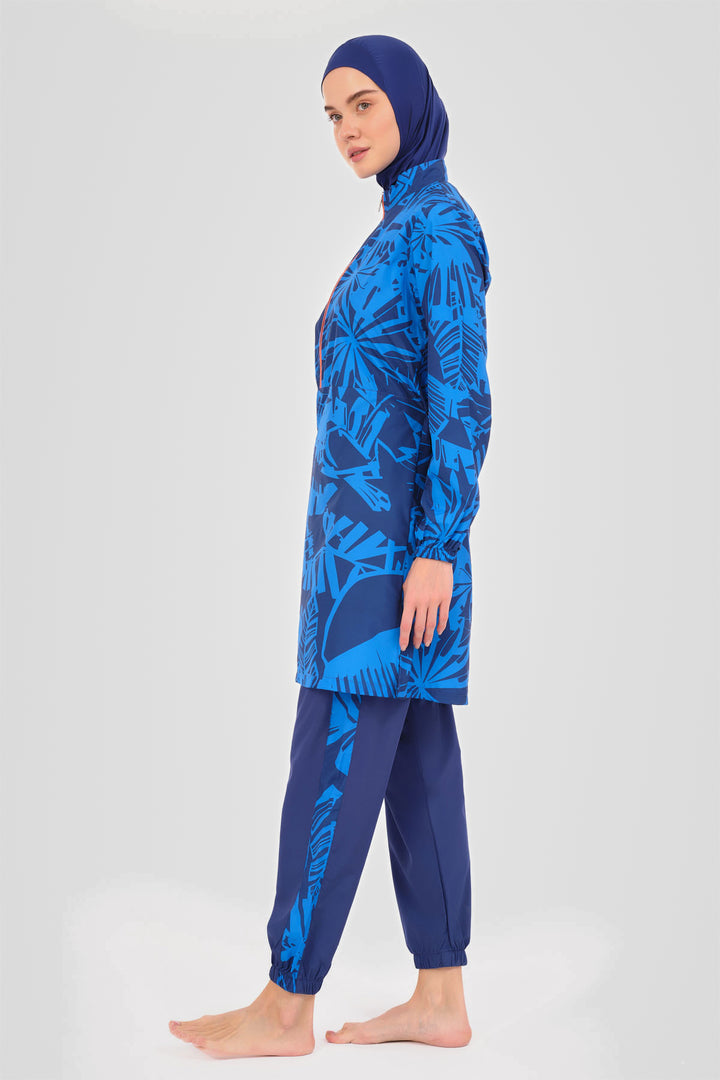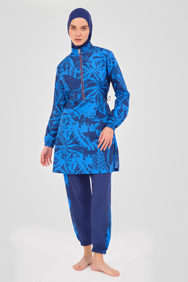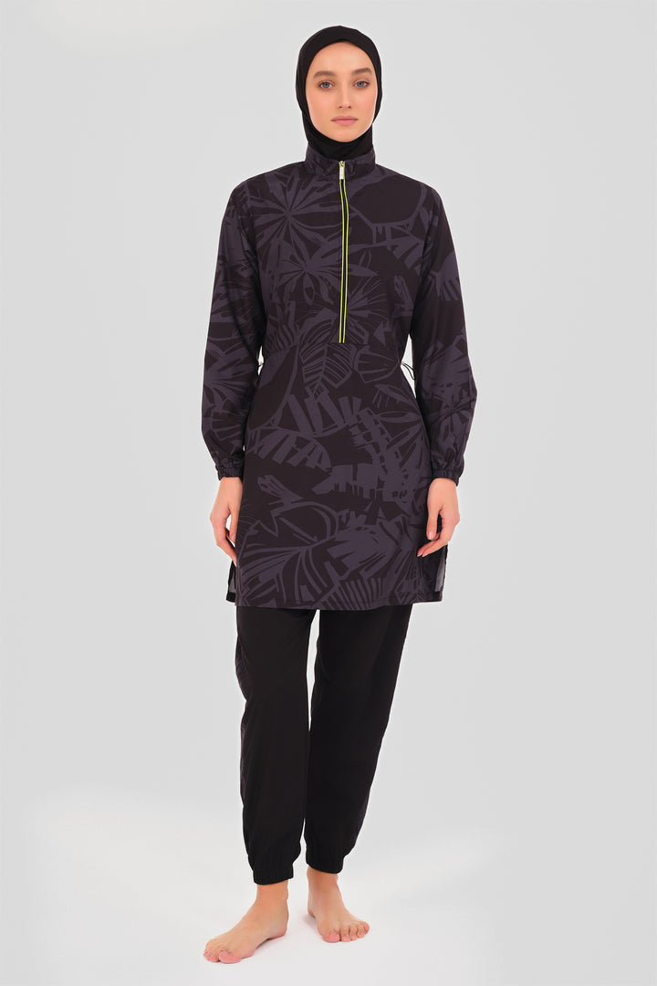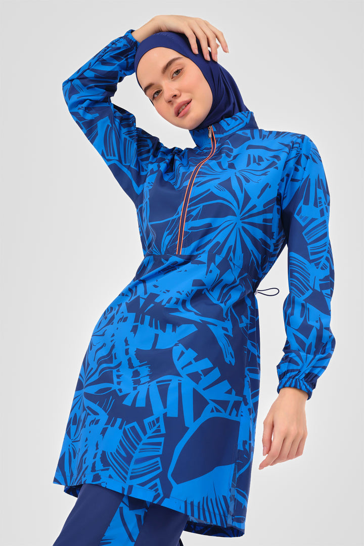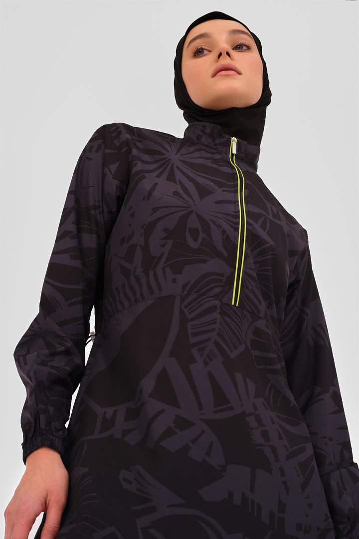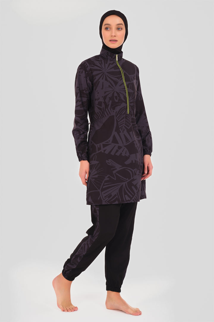 - Unique Design: Patterned top with stand-up collar, half-zip front, and long sleeves for a stylish yet modest look.