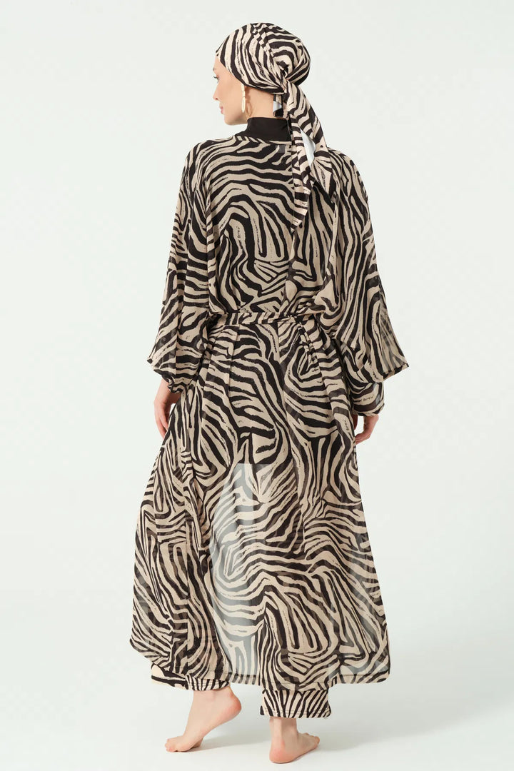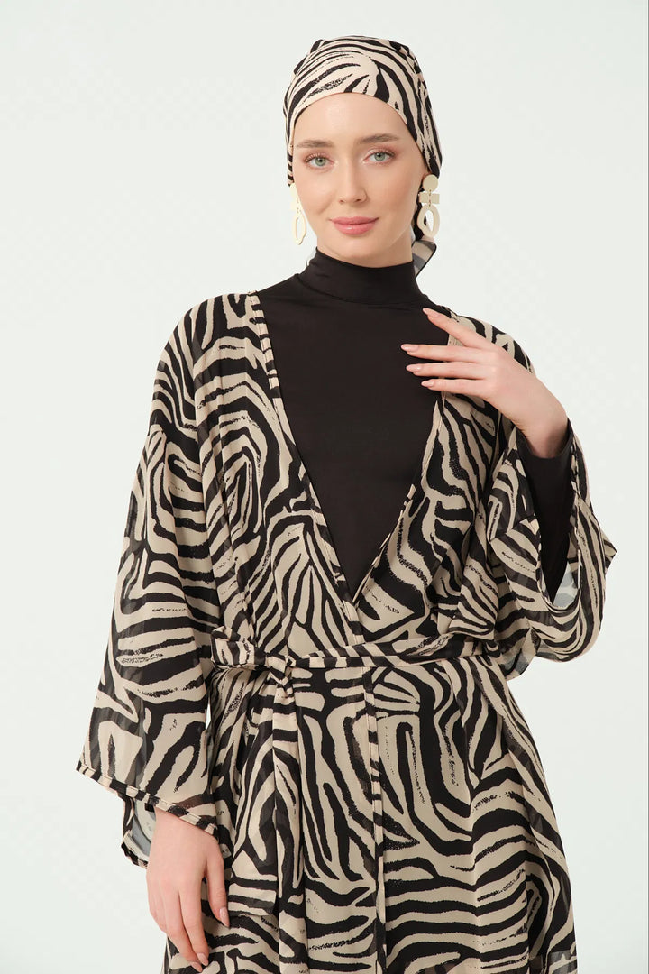 Elegant design made of patterned crepe chiffon fabric, featuring a stylish belt detail that adds a chic, feminine touch.