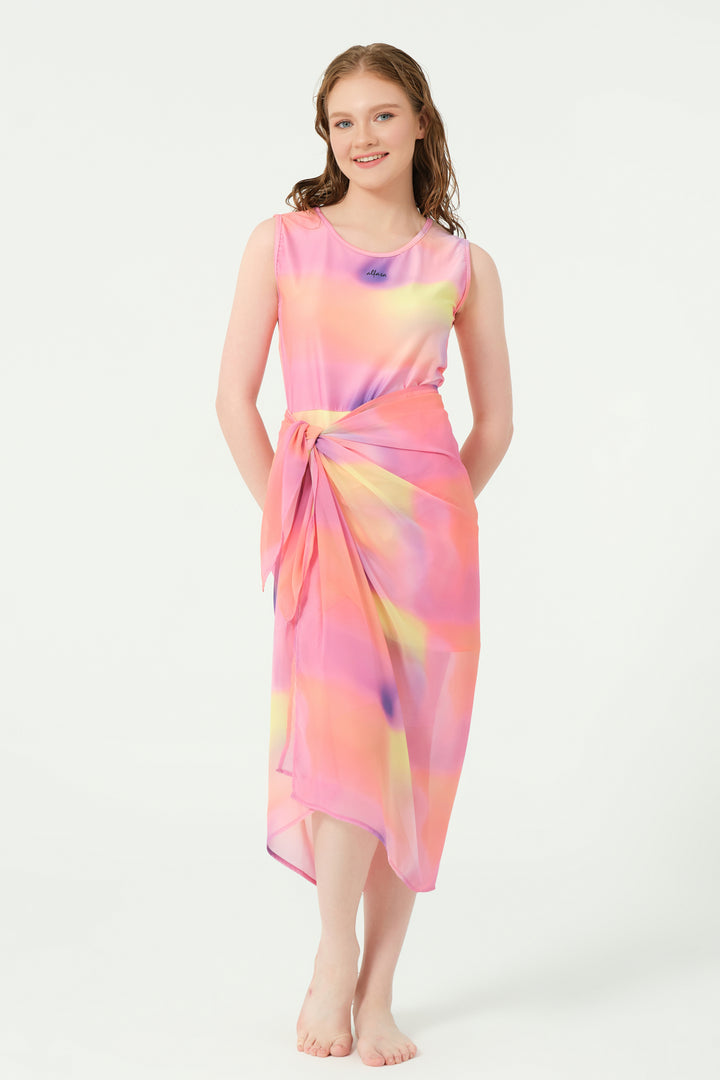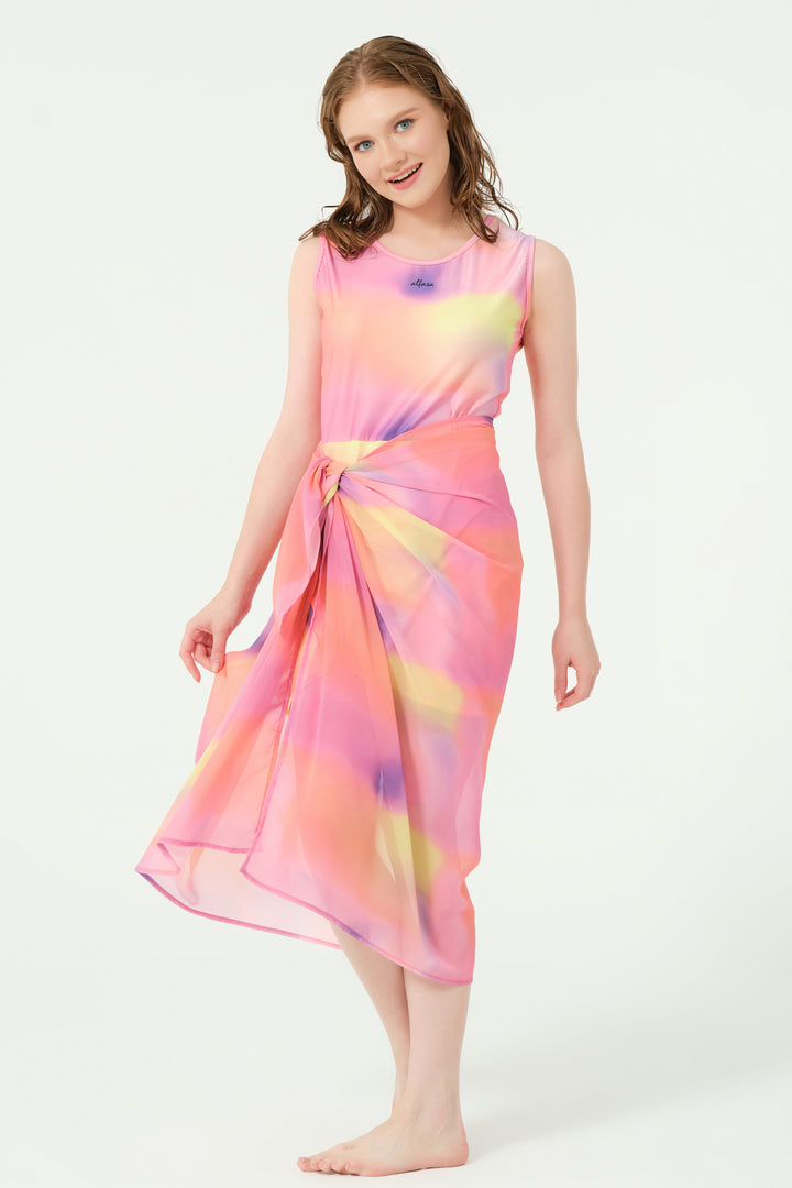 Crafted from lightweight patterned crepe chiffon, the Coco Skirt Pareo is the perfect modest swimwear cover up for beach or poolside days. Designed with a flattering waist-tie style, it offers effortless layering over swimsuits while keeping you elegant and comfortable.